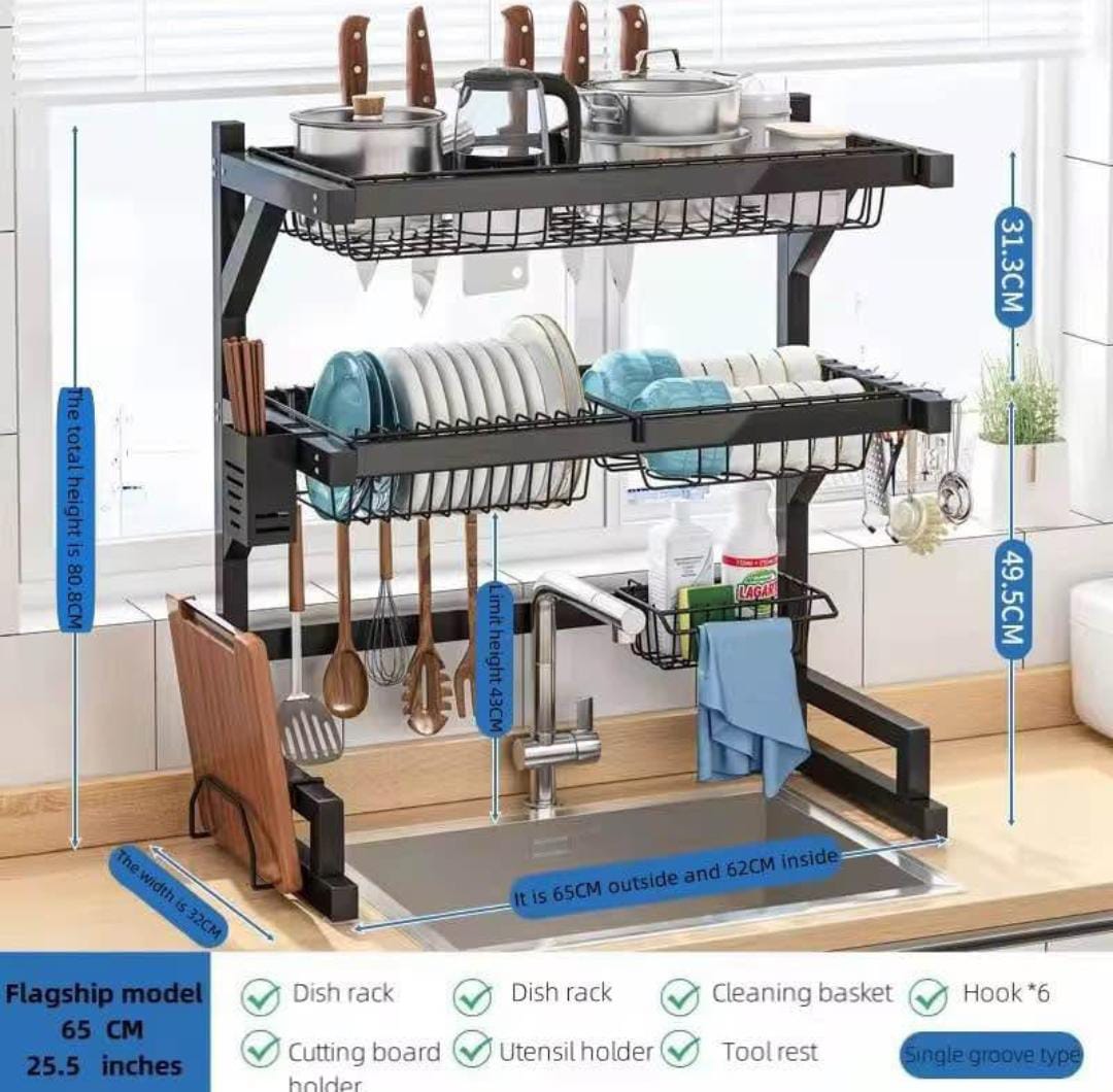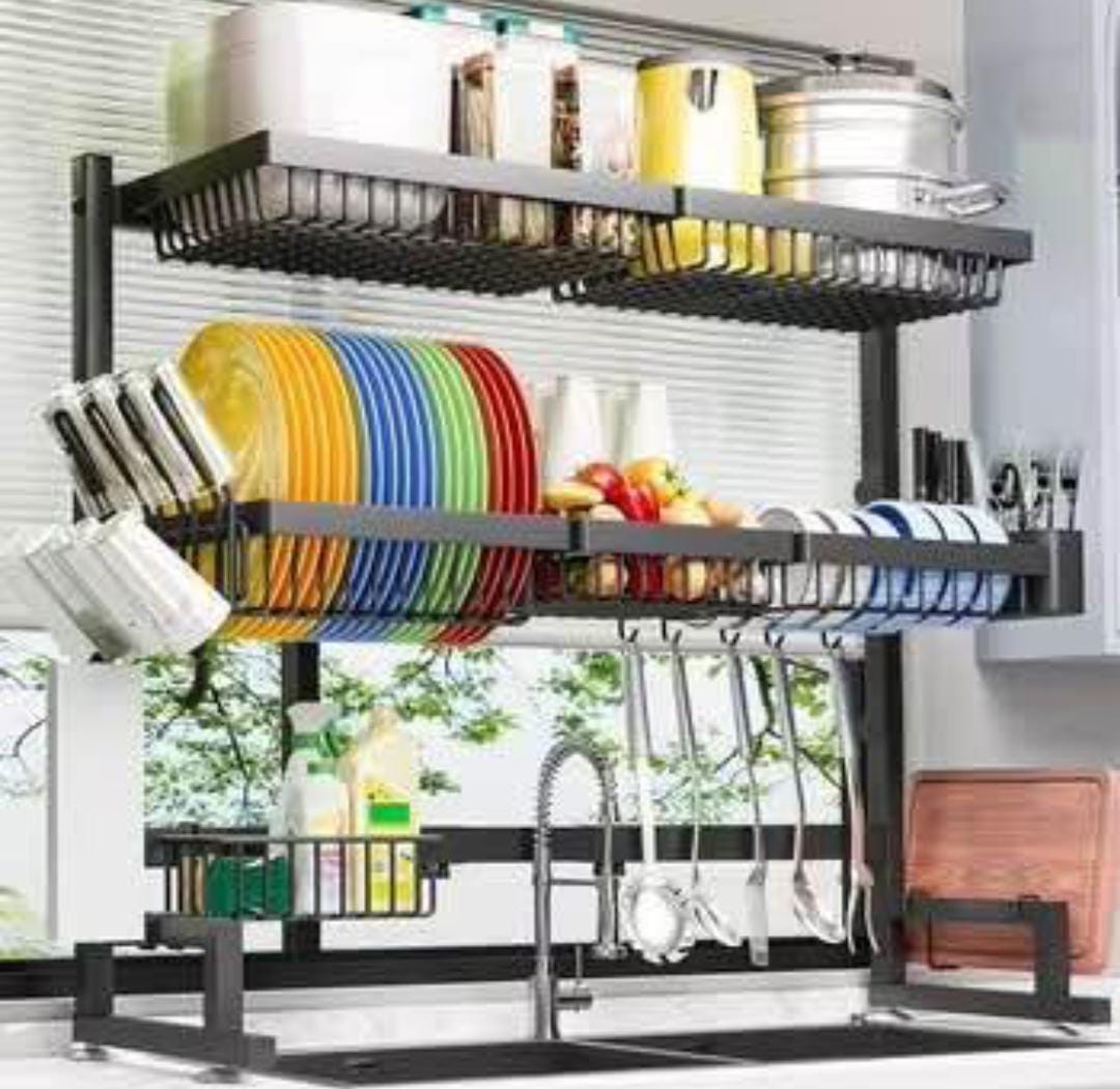 Mantén tu cocina ordenada y elegante con este práctico escurridor de acero inoxidable de dos niveles. Diseñado para colocarse sobre el lavaplatos, aprovecha el espacio vertical y mantiene tu mesón seco y libre de desorden.